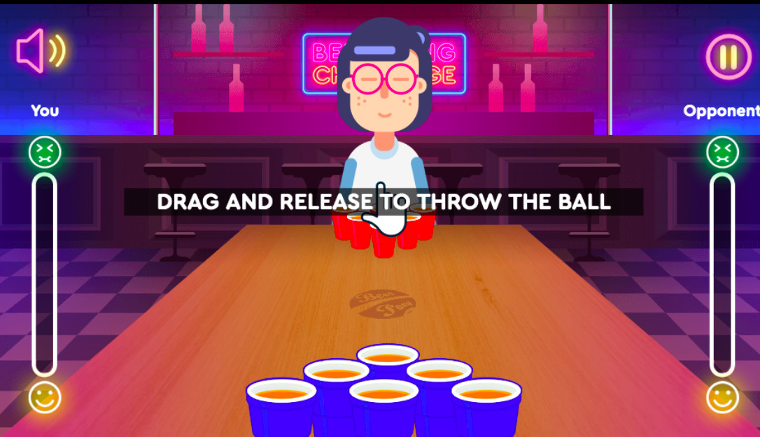 Carefully tap & flick the ping pong ball into your opponent’s beer cup. Land the ball correctly to make your ’em drink.